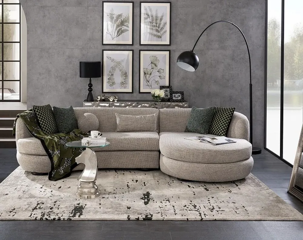 | يتضمن الطقم | كنبة مقعدين يد يسار 1 قطعة - أريكة استرخاء 1 قطعة - وسادة مربعة للديكور 2 قطعة - وسادة مستطيلة للديكور 1 قطعة - وسادة دائرية للديكور 1 قطعة |