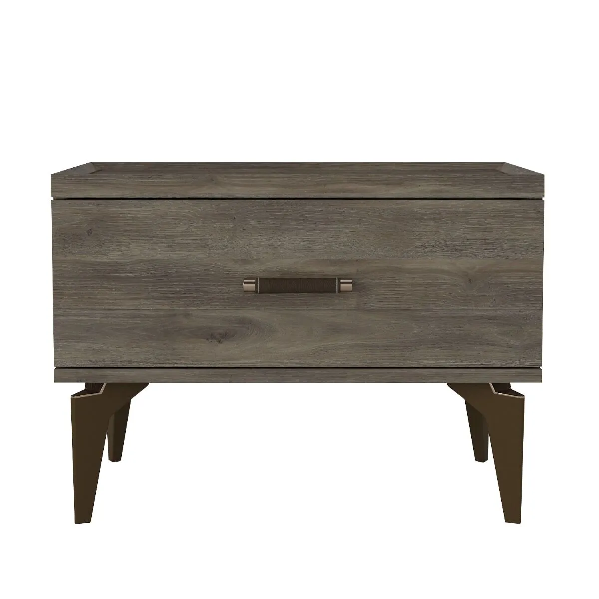 طاولة سرير جانبية ايفا خشبية و أرجل ستيل - رمادي وبني