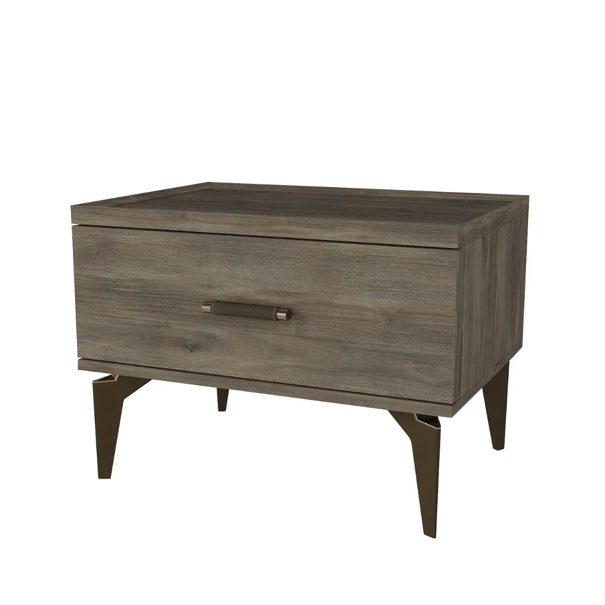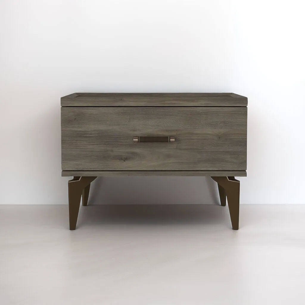 أنت تراجع:طاولة سرير جانبية ايفا خشبية و أرجل ستيل - رمادي وبني