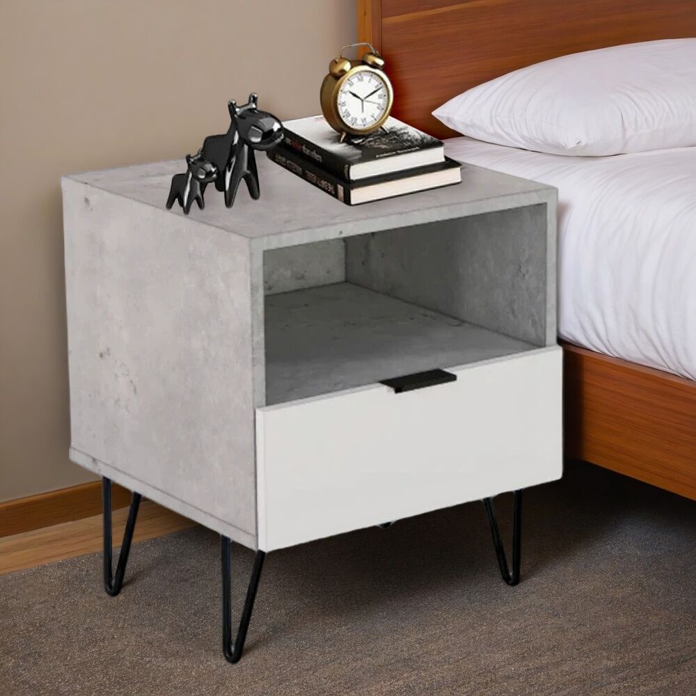 أنت تراجع:كومودينو درج ورف بيان - رمادي وابيض