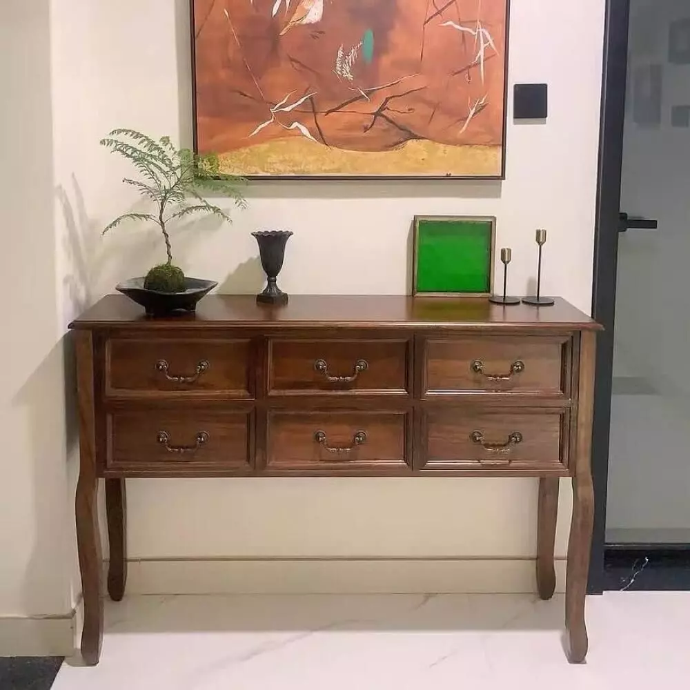 كونسول خشب طبيعي مالوم : كونسول خشبي أنيق بتصميم كلاسيكي فاخر يضيف لمسة راقية ودافئة إلى أي مساحة داخل المنزل، حيث يجمع بين الجمال العملي والتفاصيل المتقنة التي تعكس جودة التصنيع. يتميز بمظهره الخشبي الطبيعي وأرجل بتصميم أنيق تضفي حضورًا مميزًا على الديكور، مع مساحة تخزين منظمة تساعد على ترتيب الأغراض اليومية بطريقة عملية ومرتبة. يناسب المداخل وغرف المعيشة وغرف النوم، ويمكن تنسيقه بسهولة مع المرايا أو الإكسسوارات لإكمال شكل ديكوري متكامل يمنح المكان إحساسًا بالفخامة والانسجام.