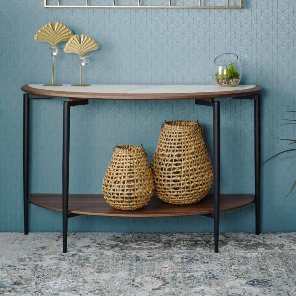 زيني مدخل منزلك عند اقتنائك لكونسول لامار الجذاب والأنيق مصنع بتصميم فريد ومميز بألوانه الجذابة التي تضفي لمسة فنية على منزلك بسطح ابيض وقوائم باللون الأسود ويحتوي على رف سفلي باللون البني. اضيفي بعض الديكورات على الكونسول لإبراز جماله.