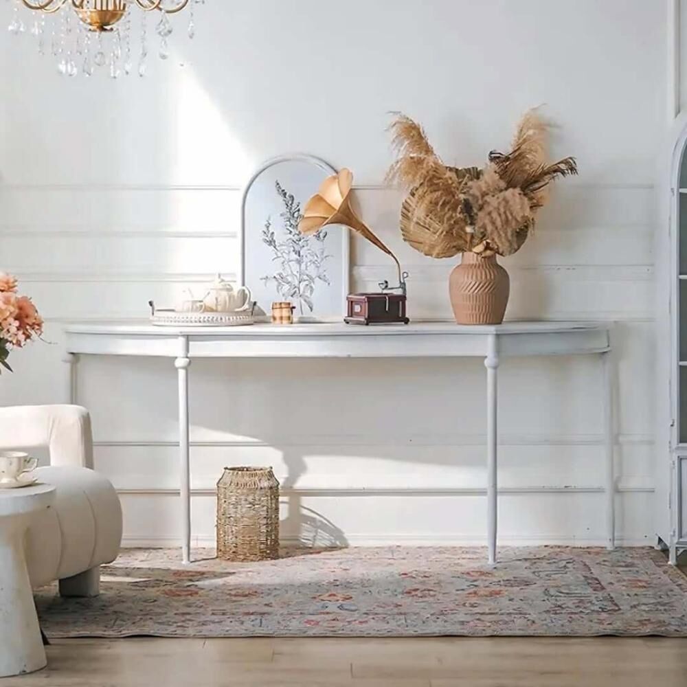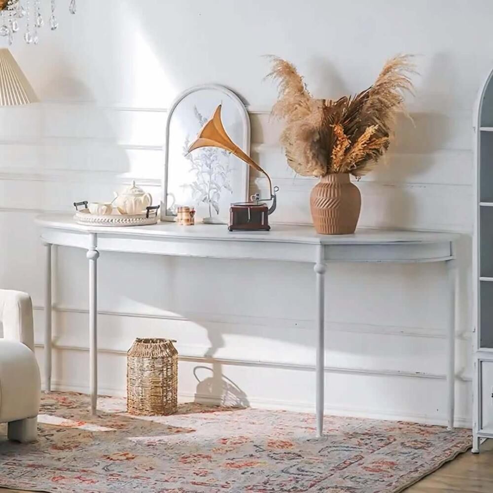 كونسول أنيق يضيف لمسة من الفخامة والترتيب إلى المدخل أو غرفة المعيشة. تصميمه مدمج يوفر مساحة لتخزين الأغراض الصغيرة وتنظيم المفاتيح أو الزينة، مصنوع من مواد عالية الجودة تضمن المتانة وطول العمر مع سهولة التنظيف.