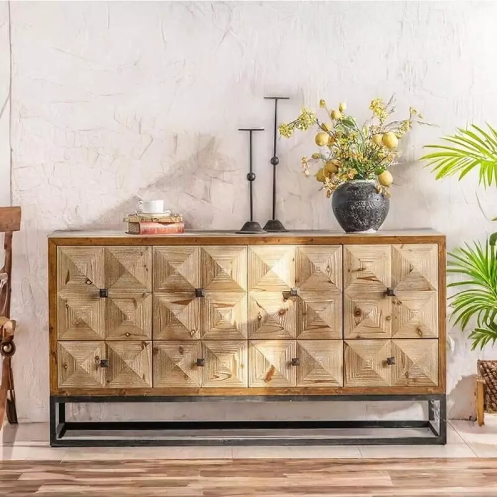 كونسول يدوي رانال هو قطعة ديكور فريدة تمزج بين الأناقة العملية والطابع الريفي العصري، مصممة لتكمل أي منزل بنمط بوهو. يجمع هذا البوفيه بين الخشب الطبيعي والحديد المصنوع يدويًا بطريقة معقدة، مما يضفي دفء وفخامة على المساحة. يتميز بهيكل قوي وأبواب خشبية يدوياً تضيف طبقات من التفاصيل المبهرة، مع أرجل مبطنة تحمي الأرضيات وتوفر ثباتًا ممتازًا. توفر الخزانة مساحة واسعة للتخزين، لتكون مثالية لغرفة المعيشة، غرفة النوم، أو المطبخ، وتضفي لمسة طبيعية أنيقة تعزز جمالية أي زاوية في المنزل.