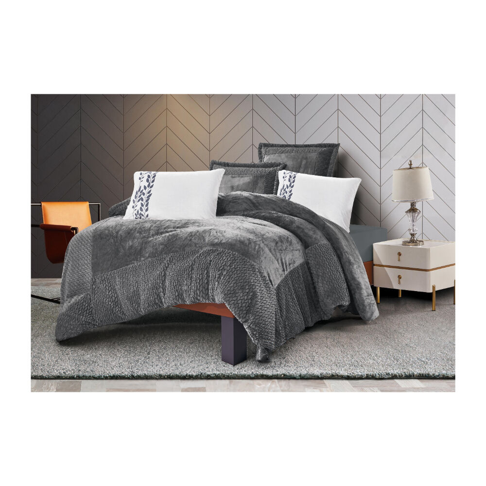 لحاف كينج مخمل ناعم 6 قطع - رصاصي غامق