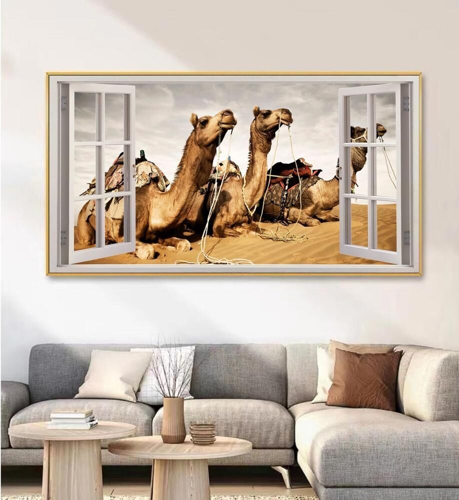 اللوحة عبارة عن تصميم ثلاثي الأبعاد مجموعة من الجمال في تجربة رائعة أمام النافذة