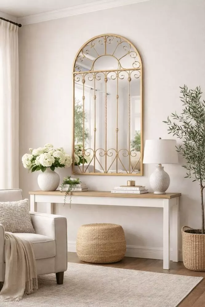 أضف لمسة من الفخامة واللمعان إلى جدران منزلك مع هذه المرايا الجدارية المصنوعة من الحديد بتصميم أنيق بلون ذهبي رائع. تجمع هذه المرايا بين الجمال الكلاسيكي واللمسات العصرية، مما يجعلها إضافة مثالية لأي غرفة. تضفي الإطارات الحديدية الذهبية لمسة من التميز على الديكور الداخلي، بينما يعكس الزجاج الواضح الضوء بشكل رائع، مما يوسع المساحة ويمنح الغرفة إشراقة إضافية.