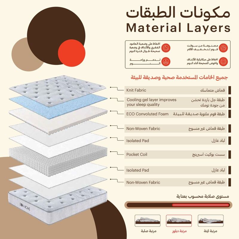 مرتبة توفر لك الراحة التامة أثناء النوم بفضل تصميمها المدروس بعناية. تتميز بتقنيات حديثة توفر التوازن الأمثل بين الدعم والراحة، مما يساعدك على الاسترخاء والتمتع بنوم هانئ.