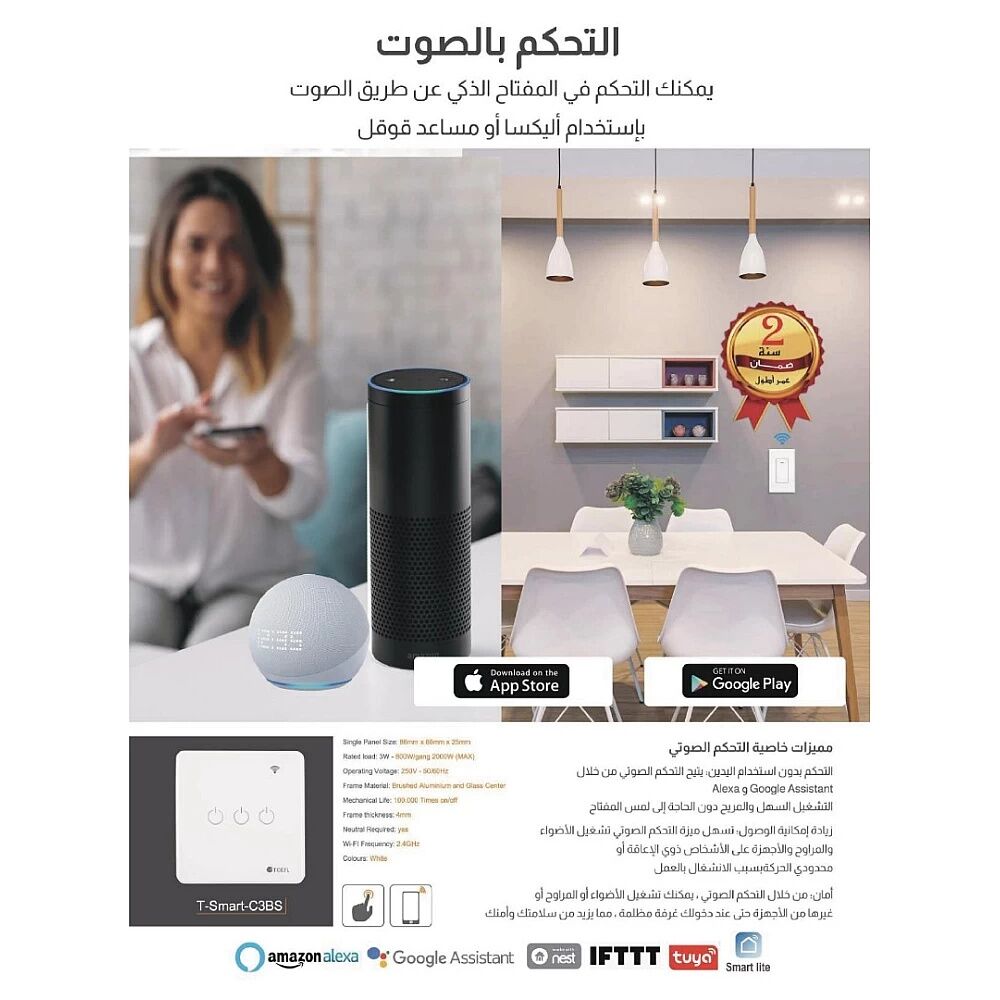 استمتع بالتحكم الذكي والبسيط في إضاءة منزلك مع مفتاح لمبات الحائط الذكي الذي يعمل بالواي فاي!هل ترغب في إضفاء الجو المثالي في منزلك بلمسة واحدة فقط؟ مفتاح لمبات الحائط الذكي يتيح لك التحكم في إضاءة الغرف بكل سهولة وذكاء. يمكنك التحكم بهذا المفتاح عن بُعد عبر تطبيق سمارت هوم على هاتفك الذكي أو حتى بصوتك باستخدام اليكسا.مع وظيفة التحكم عن بُعد، لن تعد بحاجة إلى الانزعاج من الصعود والنزول لتشغيل الأنوار. قم بتشغيلها أو إيقافها أو ضبط السطوع والإعدادات بسهولة من أي مكان في المنزل.لا تقلق بشأن البحث عن المفتاح في الظلام، فمع مفتاح اللمس المتكامل، يمكنك التحكم بالإضاءة بلمسة واحدة فقط، مما يوفر لك الراحة والتحكم الفوري.استمتع بالراحة والذكاء، احصل على مفتاح لمبات الحائط الذكي اليوم واستمتع بجو منزلك المثالي والمريح بكل سهولة ويسر!
