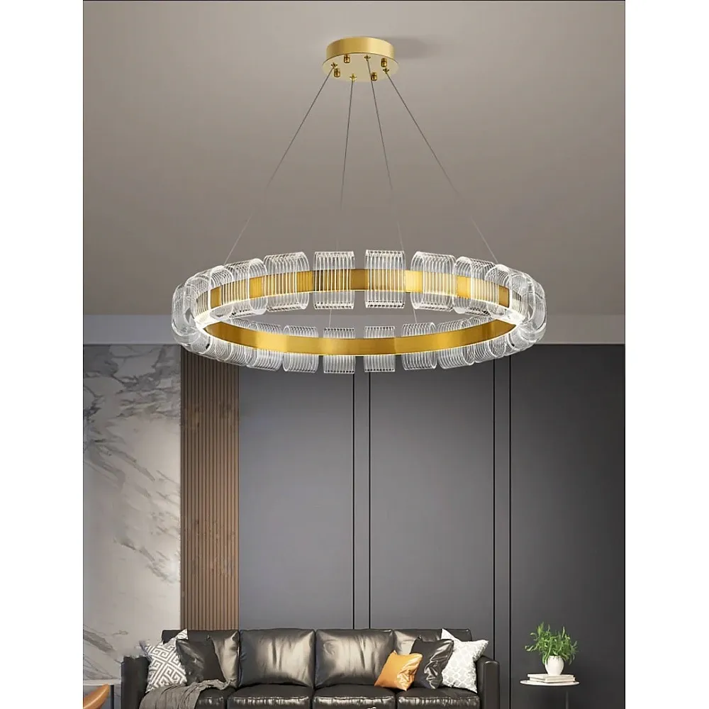 انارة معلقة شيمر مع لق كريستال ذهبي E14 80 سم