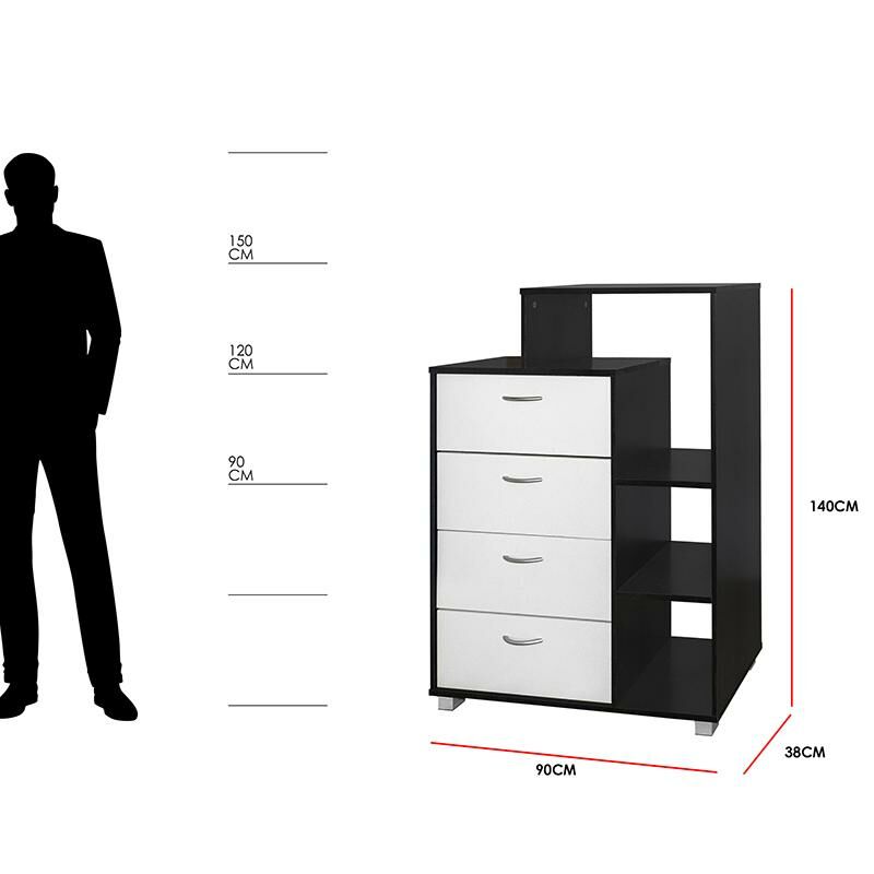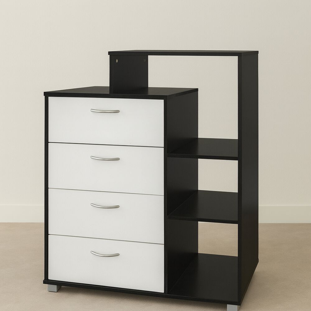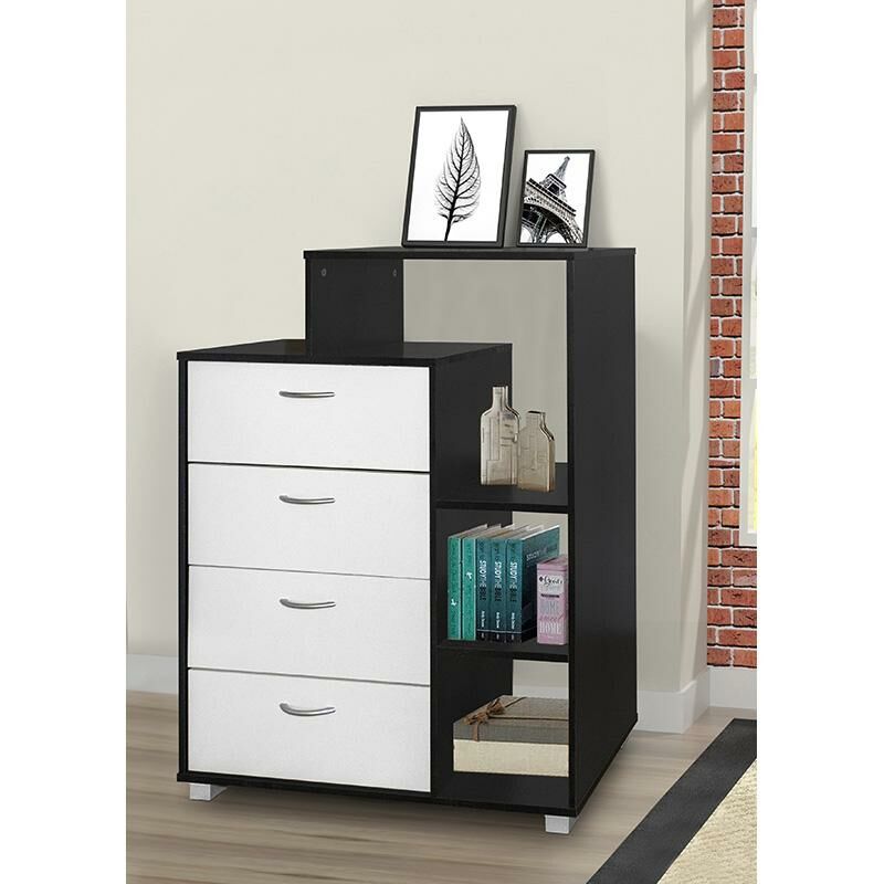 وحدة تخزين رفوف وأدراج فيفيانا خشب ماليزي ابيض واسود