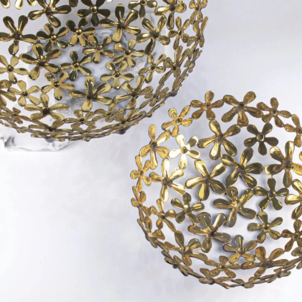وعاء نحاسي بتصميم زهور شامبا متصلة، يجسد التفاعل القوي بين الطبيعة والإنسان.
