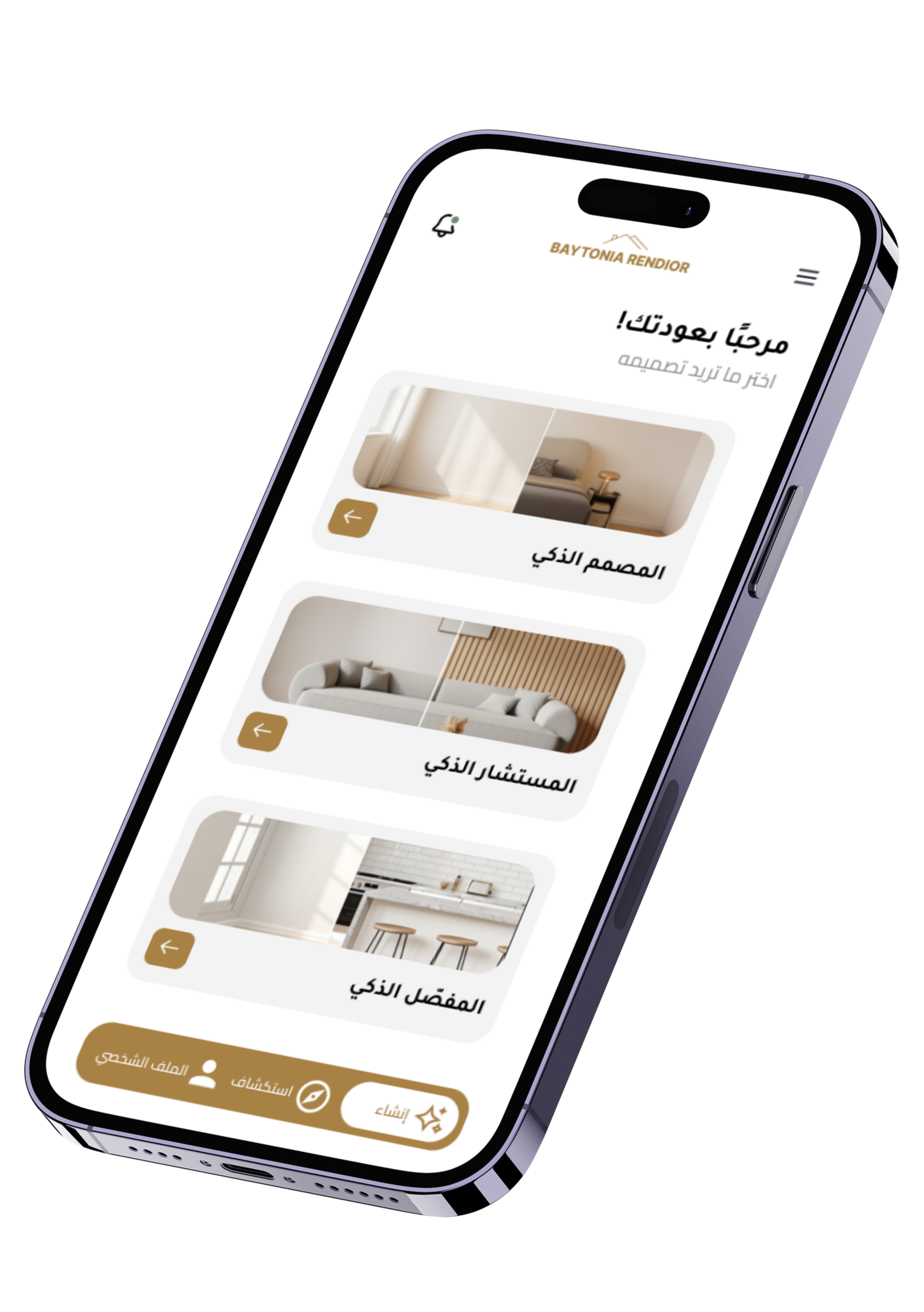 مع تطبيق Rendior نوفر لك تجربة فريدة في التأثيث الكامل والتصميم الداخلي باستخدام الذكاء الاصطناعي.