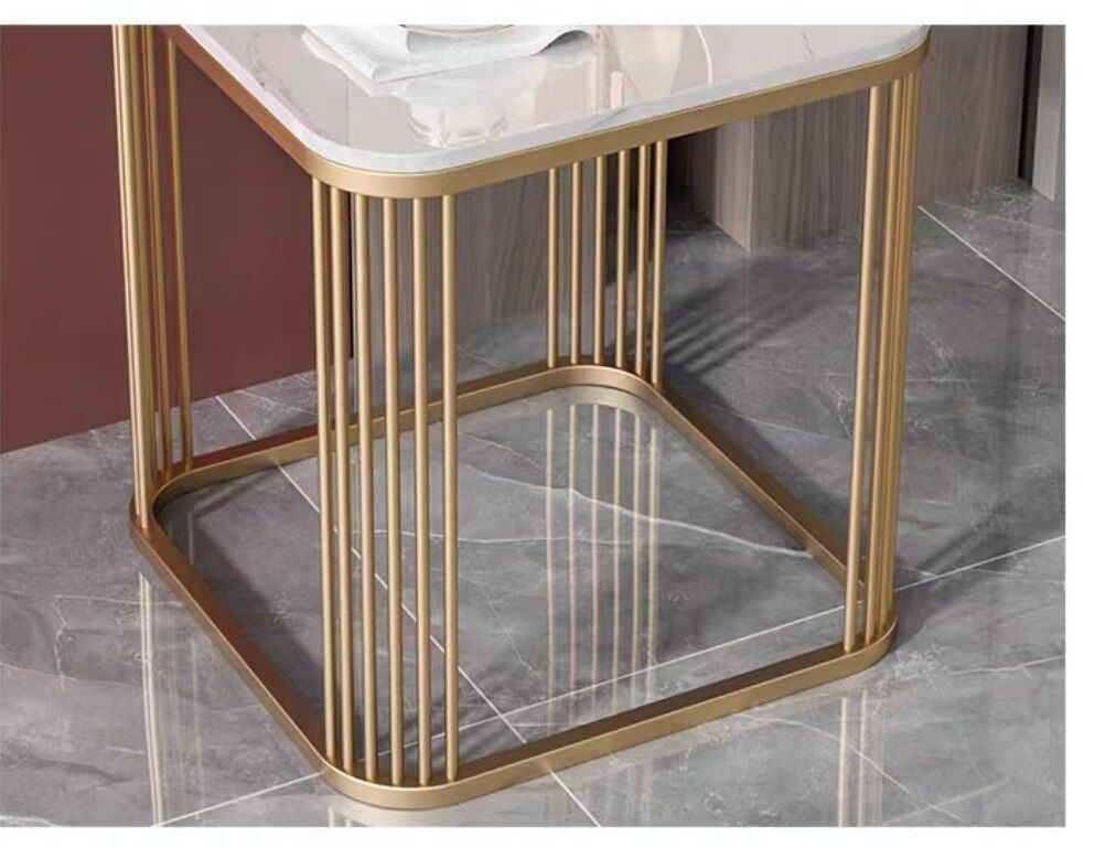 • سطح الطاولة من الحجر الصناعي المتكلس والقوائم من الحديد المتين