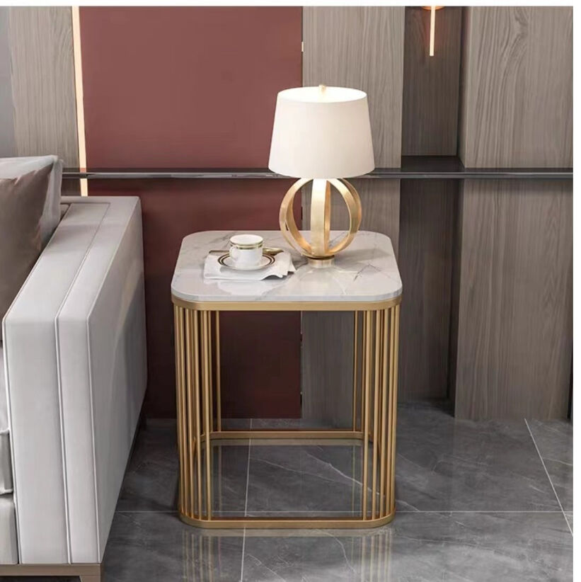 طاولة جانبية مودرن ستيلا - أبيض رخامي وذهبي