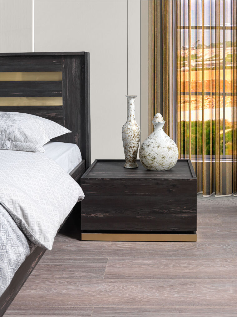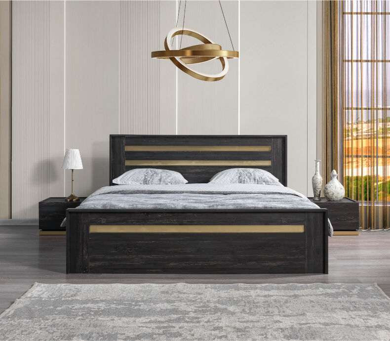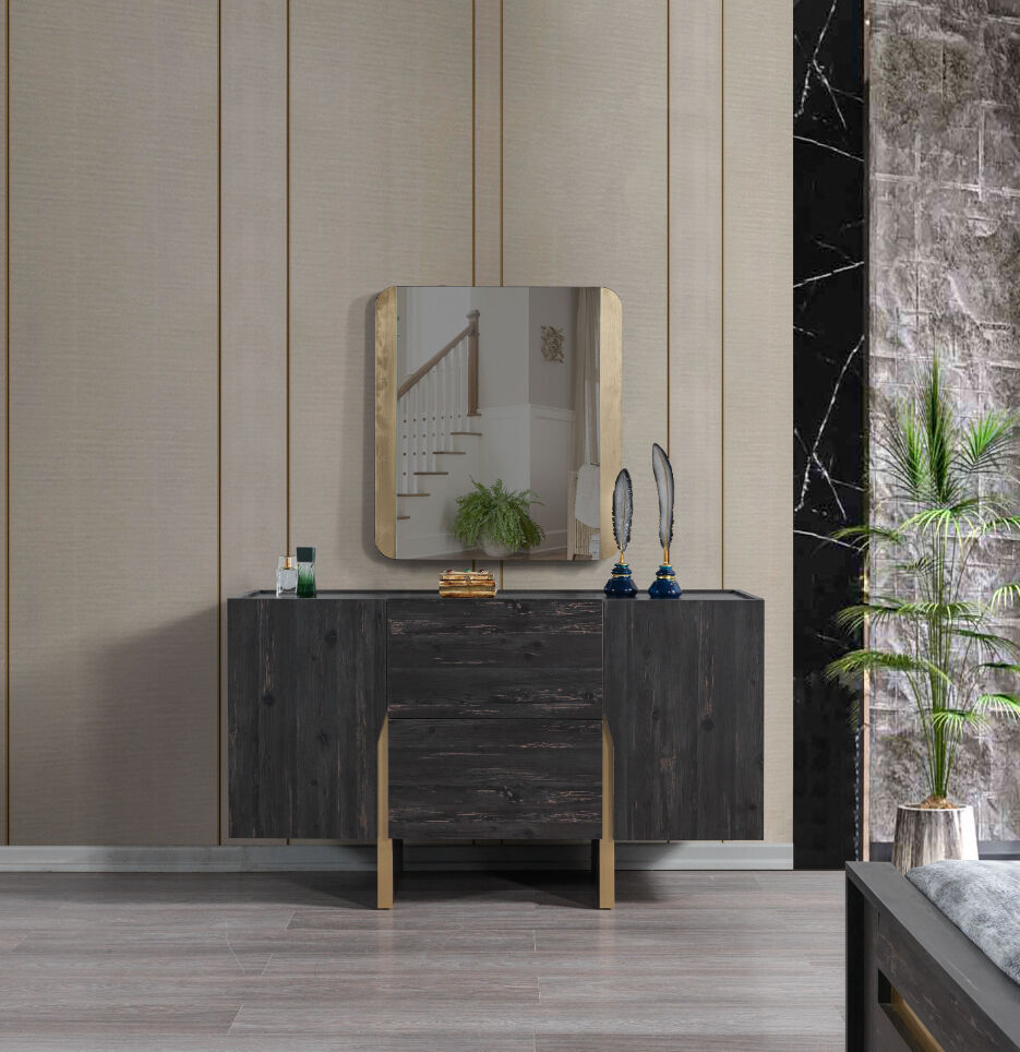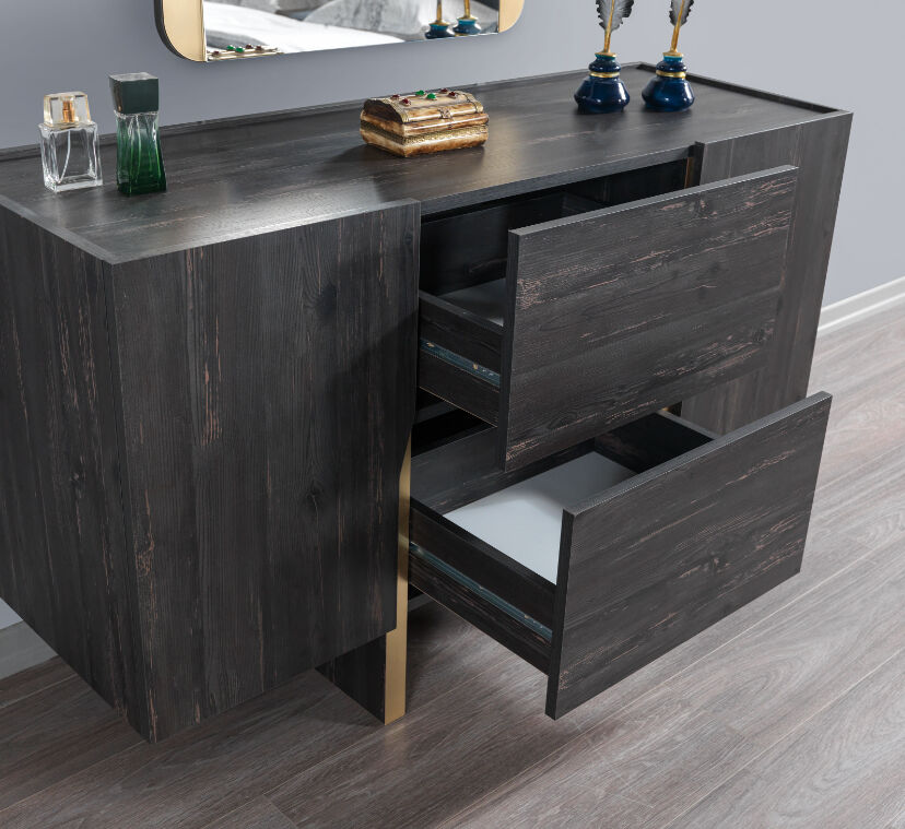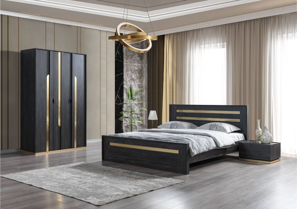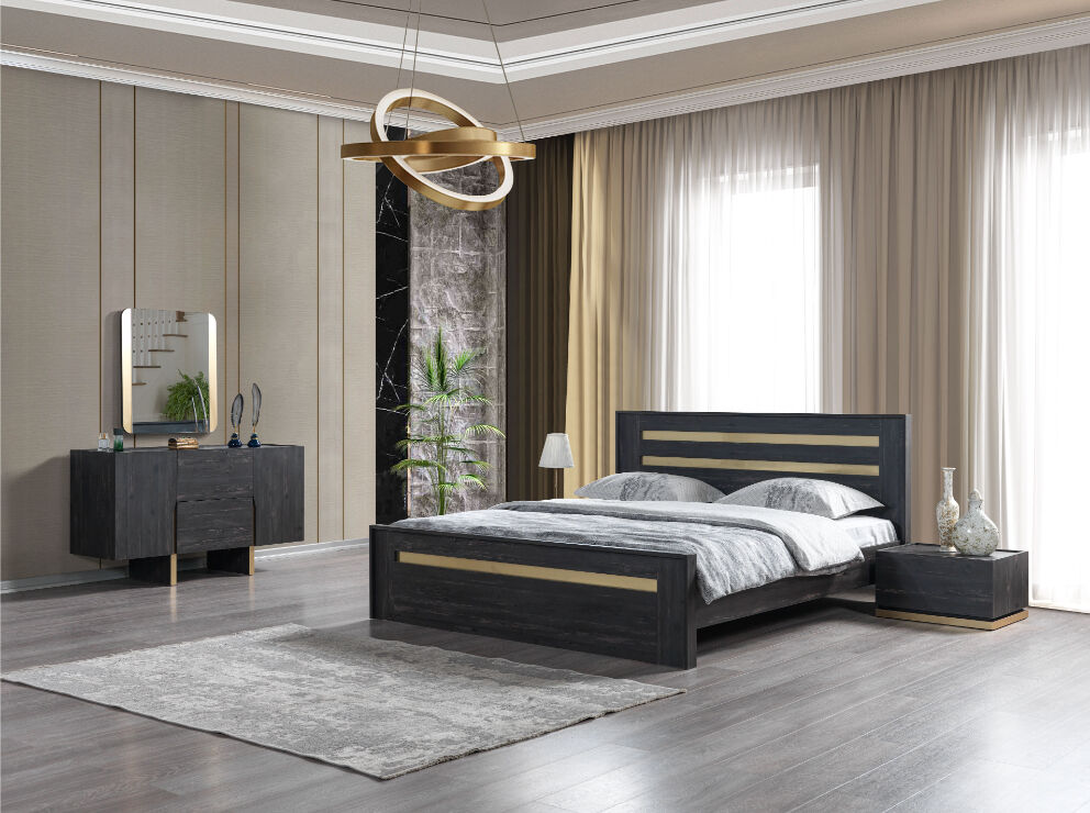 | يتضمن الطقم | سرير مزدوج 180من دون مرتبة , وحدة تخزين أدراج مع مرآة, 2 كومودينو |