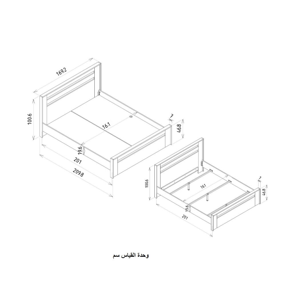 | مقاسات السرير | الارتفاع 100.6 سم * العرض 169.2 سم * العمق 209.8 سم |