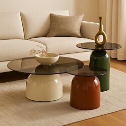 4. طاولة قهوة يارا - 3 قطع - احمر واخضر وبيج