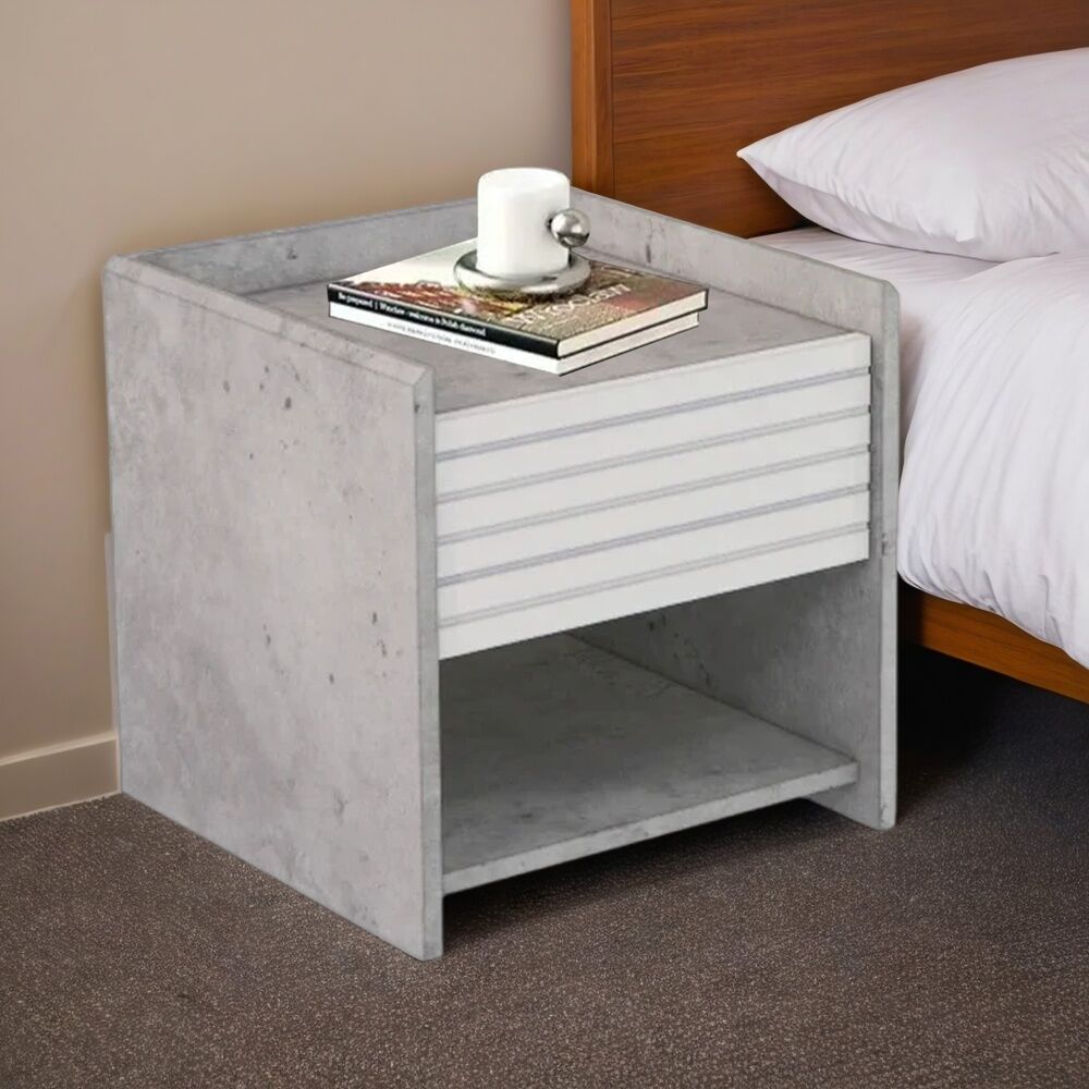 Romo Nightstand With Drawer And Shelf - Wooden And Gray