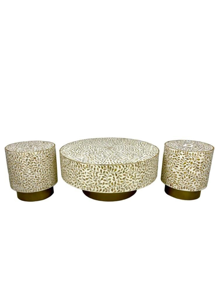 3-Piece Coffee Table Set With Indian Mother Of Pearl