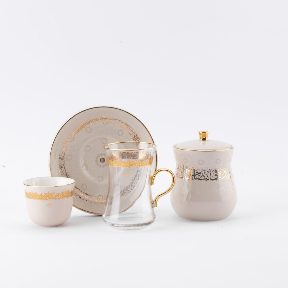 Atheer Saudi Tea and Coffee Set - Beige and Gold