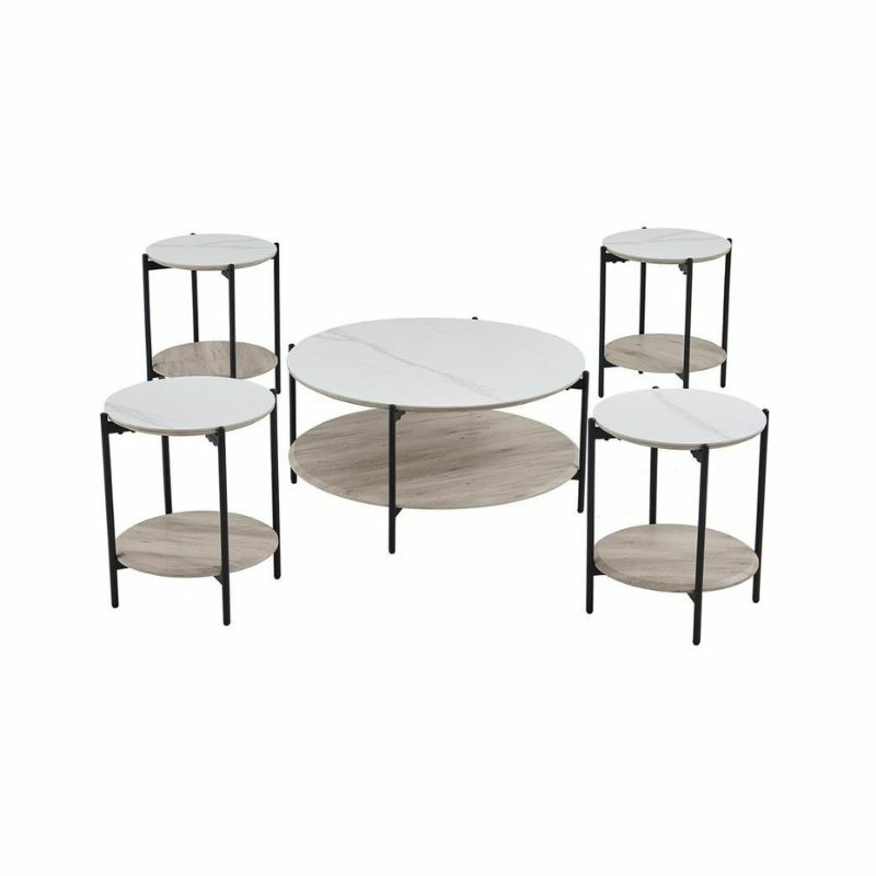 Cesinia 5-Piece Ceramic And Wood Coffee Table Set - Beige