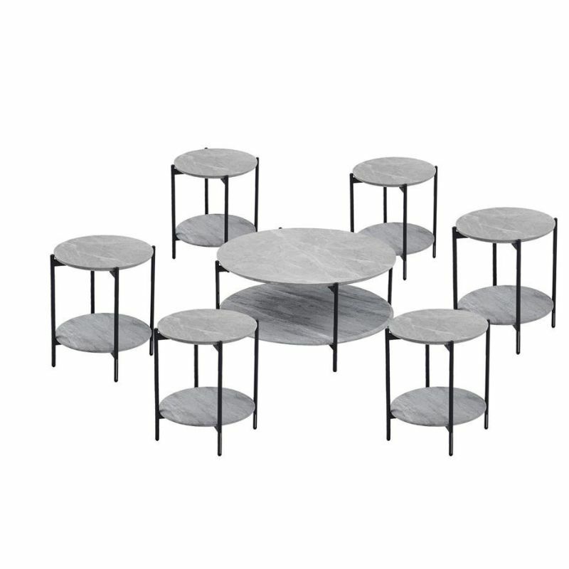Cesinia 7-Piece Ceramic And Wood Coffee Table Set - Grey