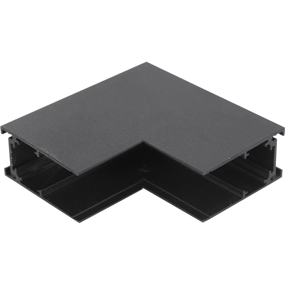 Connection between the track and the angled track for a concealed L-shaped curved toggle. Installation type: Ceiling-mounted or suspended track connection.