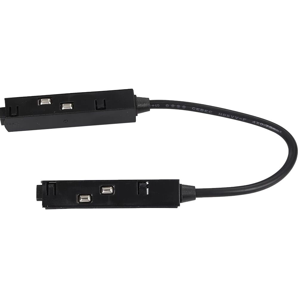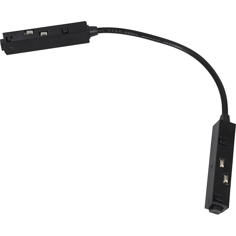 Angled electrical connection with a long, concealed wire. Installation type: Direct connection, track conduit.