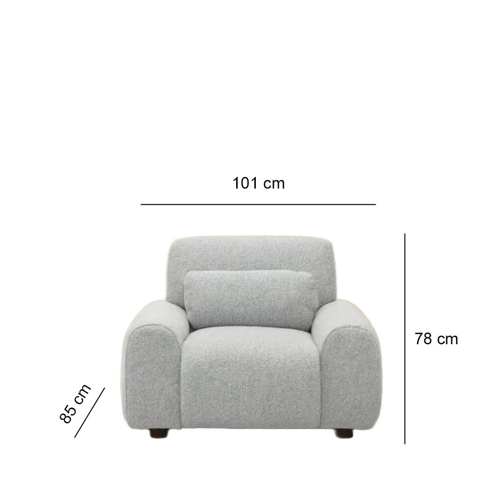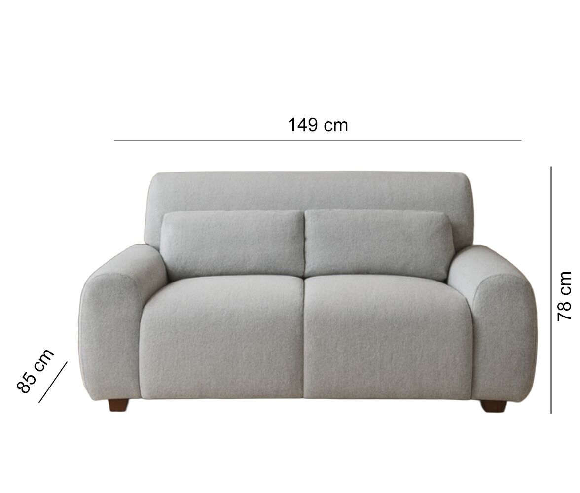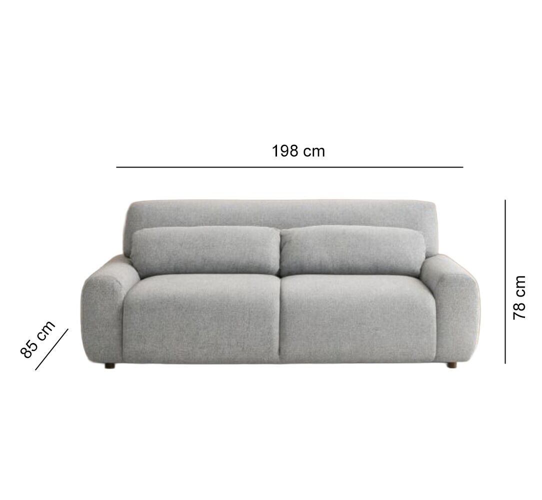 Three-seater sofa: Width 198 cm - Depth 85 cm - Height 78 cm - Leg height: 5 cm - Weight 39 kg Two-seater sofa: Width 149 cm - Depth 85 cm - Height 78 cm - Leg height: 5 cm - Weight 31 kg Single sofa: Width 101 cm - Depth 85 cm - Height 78 cm - Leg height: 5 cm - Weight 23 kg |
