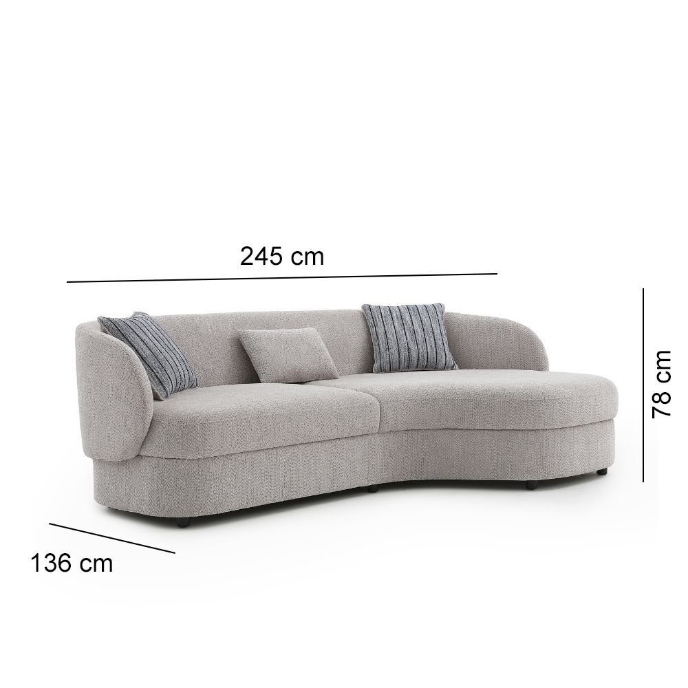 : Three pillows – two side pillows with prominent lines that enhance the sofa's aesthetic, and a rectangular pillow in the center for support and decoration.