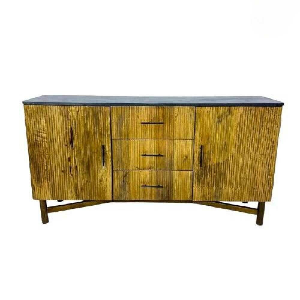 Elevate your dining space with this luxurious buffet table crafted from 100% natural wood. It features exquisite Indian craftsmanship that blends traditional details with modern elegance. It's the perfect choice for storing tableware and organizing your dining space with a touch of warmth and natural beauty.