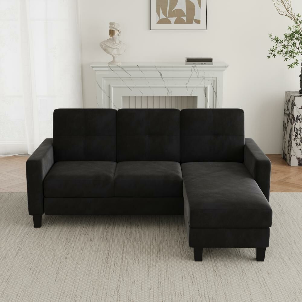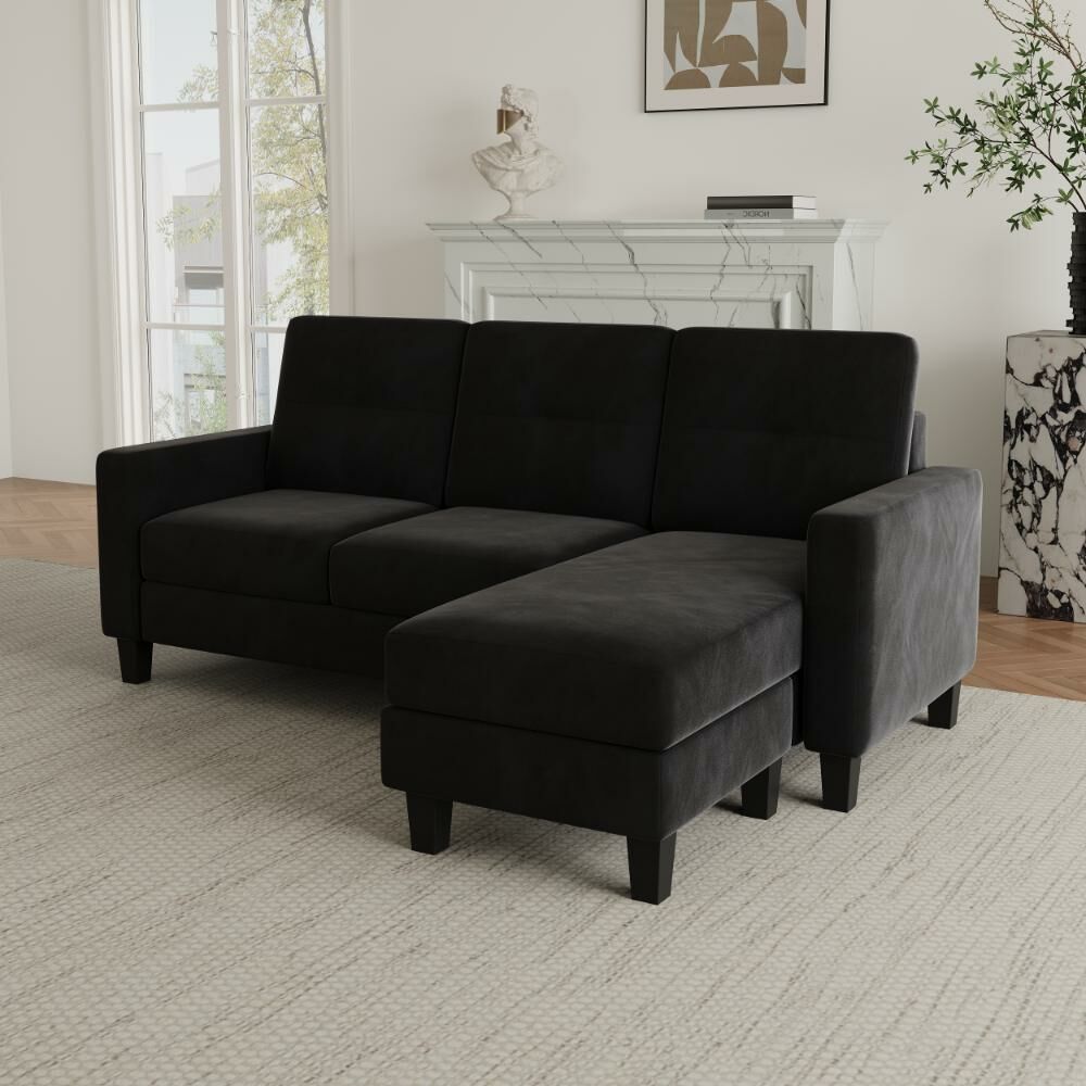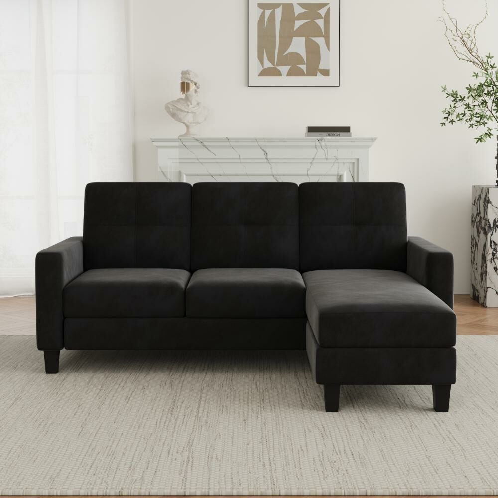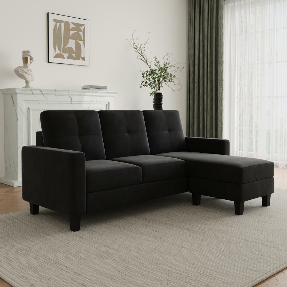 Morita Velvet L-Shaped Corner Sofa - Black... Discover Comfort and Elegance.