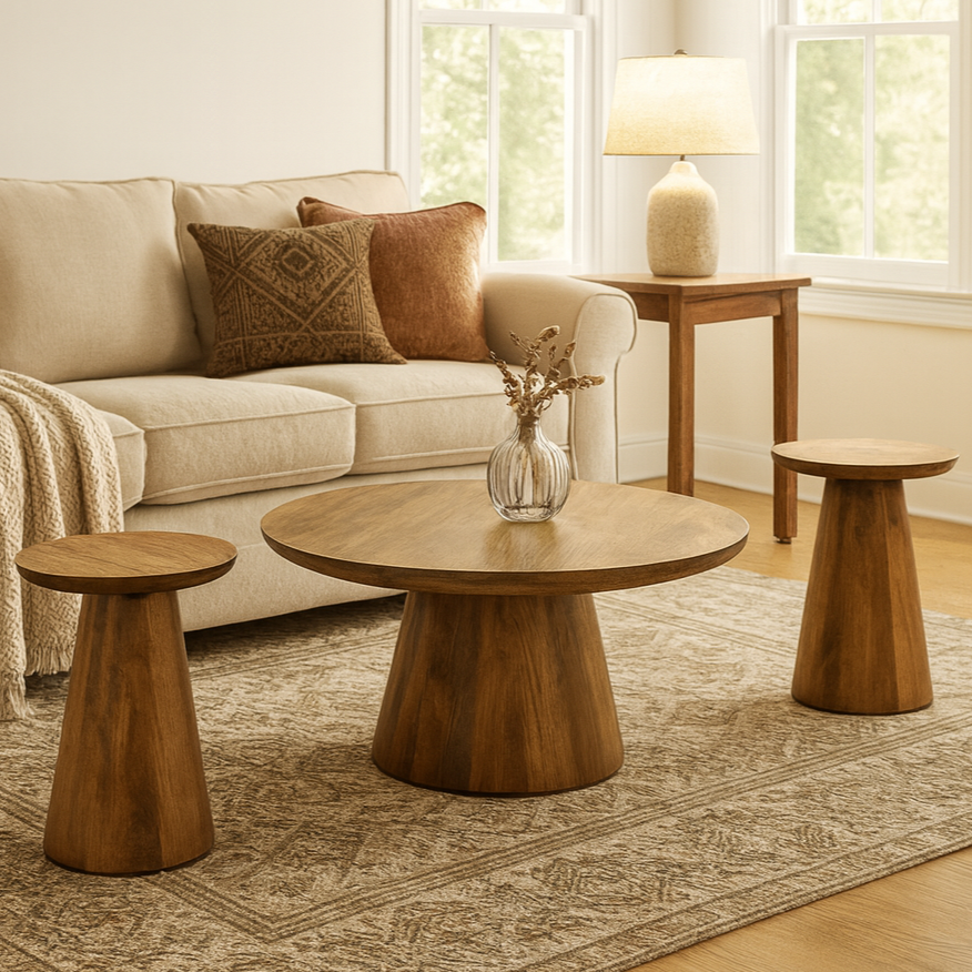You're reviewing:Natural Indian Wood Coffee Table And Side Tables Set - 3 Pieces