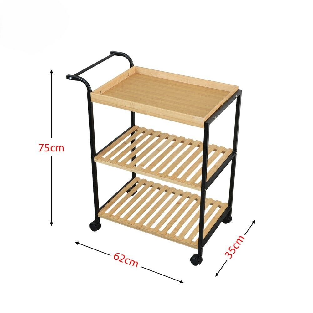 Enjoy serving drinks and snacks to your family and guests with this serving cart. Equipped with shelves to hold multiple items at once, it also features wheels for effortless mobility. Made of bamboo and iron, it's strong, durable, and can withstand repeated daily use.