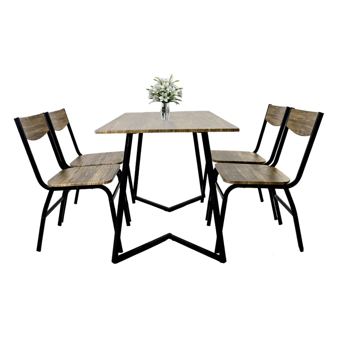 The dining table is made of high-quality, durable materials that resist various weather conditions, scratches, and shocks, and boasts a luxurious design that reflects contemporary culture. The tabletops and chairs are made of polished MDF wood for comfortable seating, while the legs are made of rust-resistant iron finished in an elegant black color. This set can seat a family of four and makes an elegant addition to your dining room.