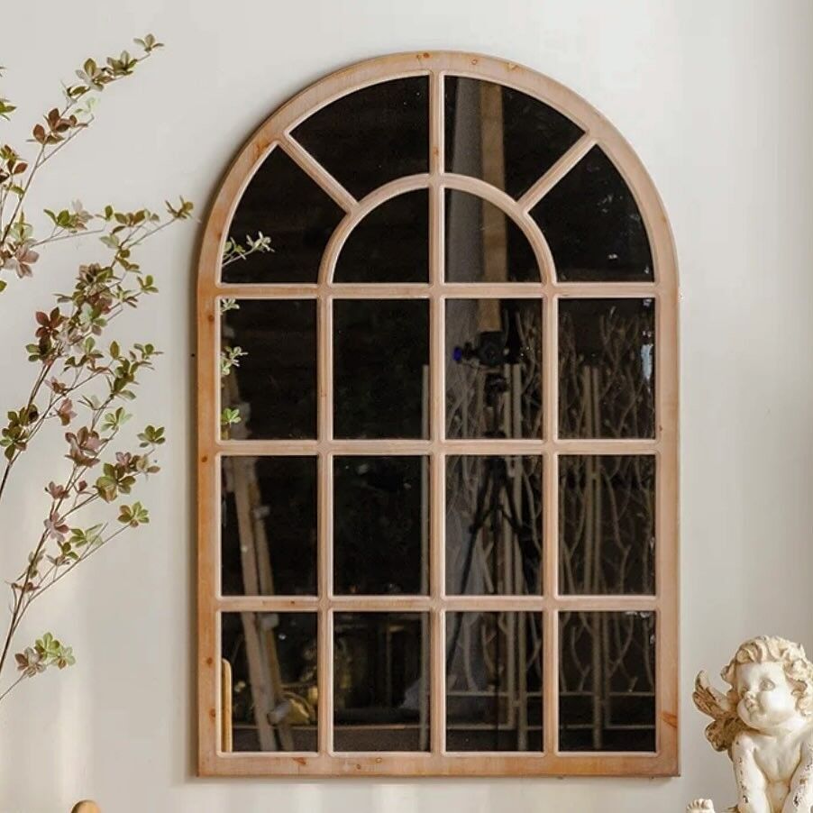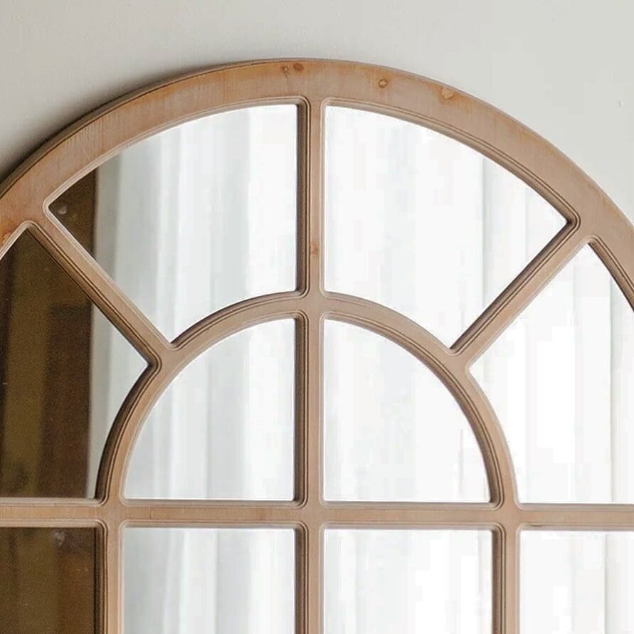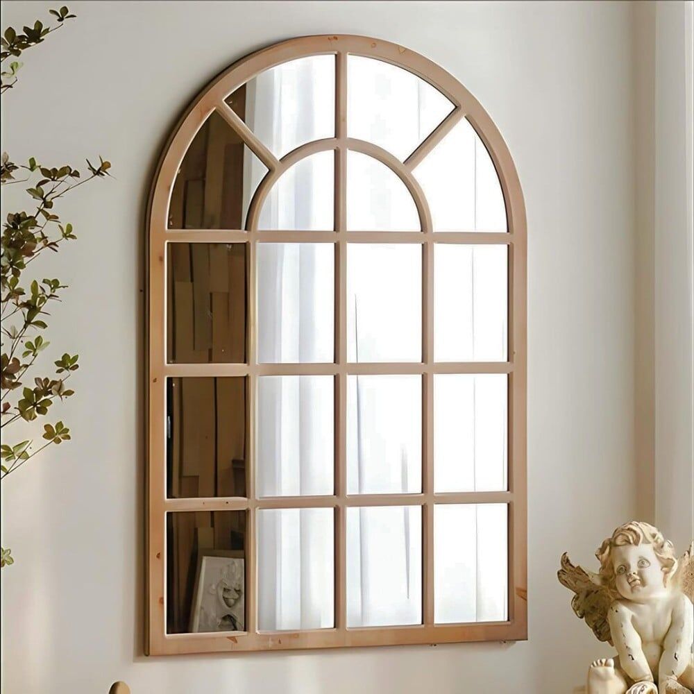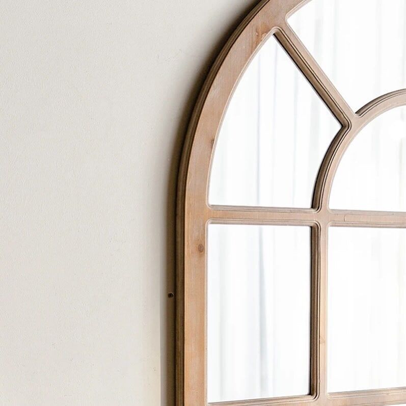 A wooden wall mirror with distinctive details that combines modern design with high quality to add an elegant touch to your living space.