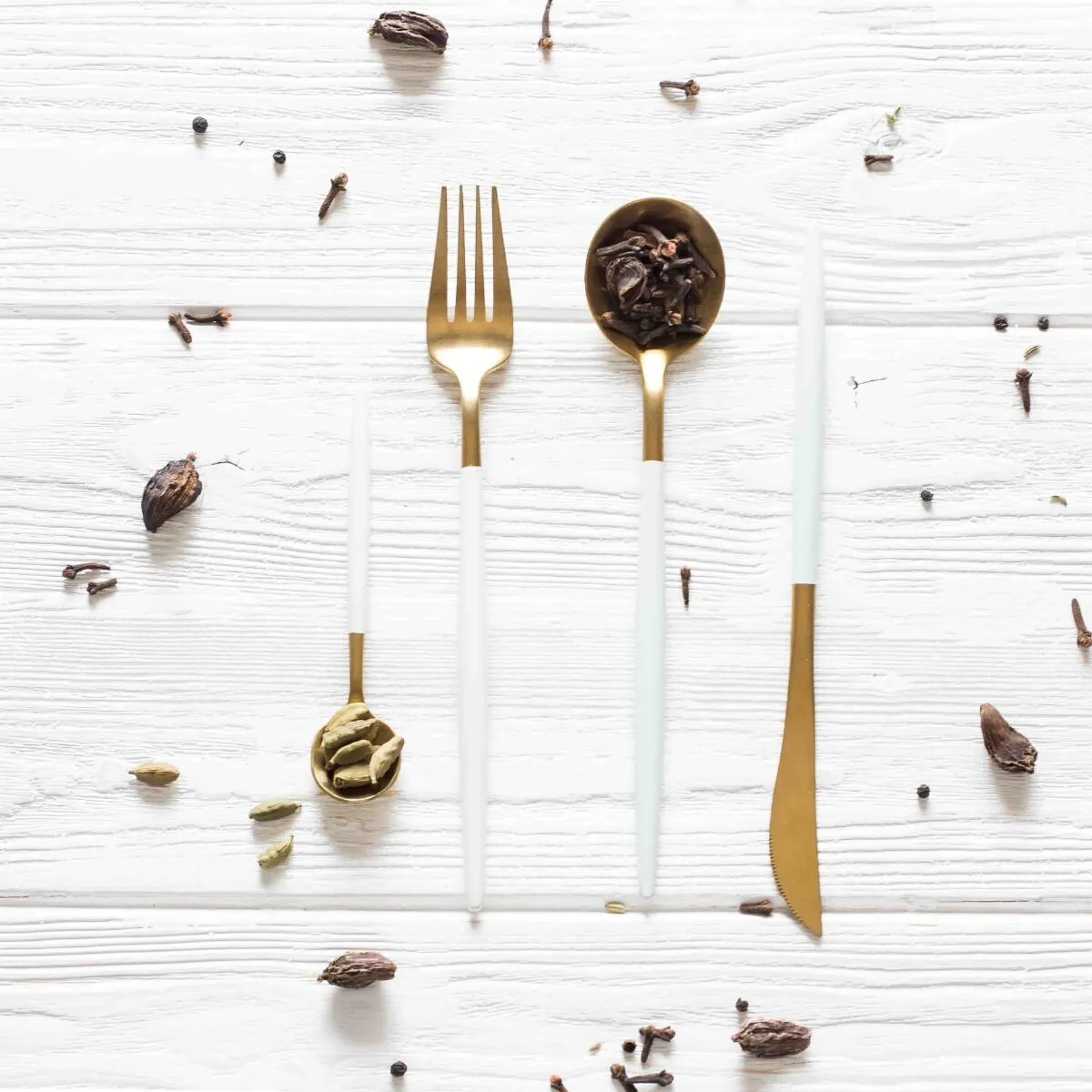 طقم أدوات طعام غوا 4 قطع - لون ذهبي وأبيض
